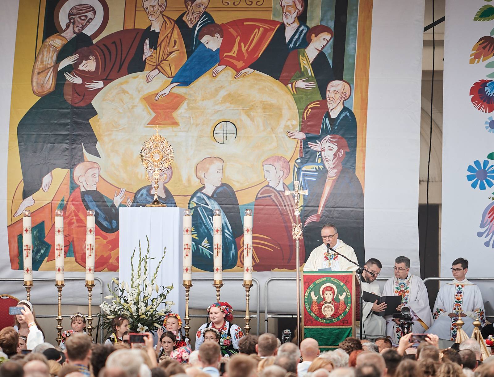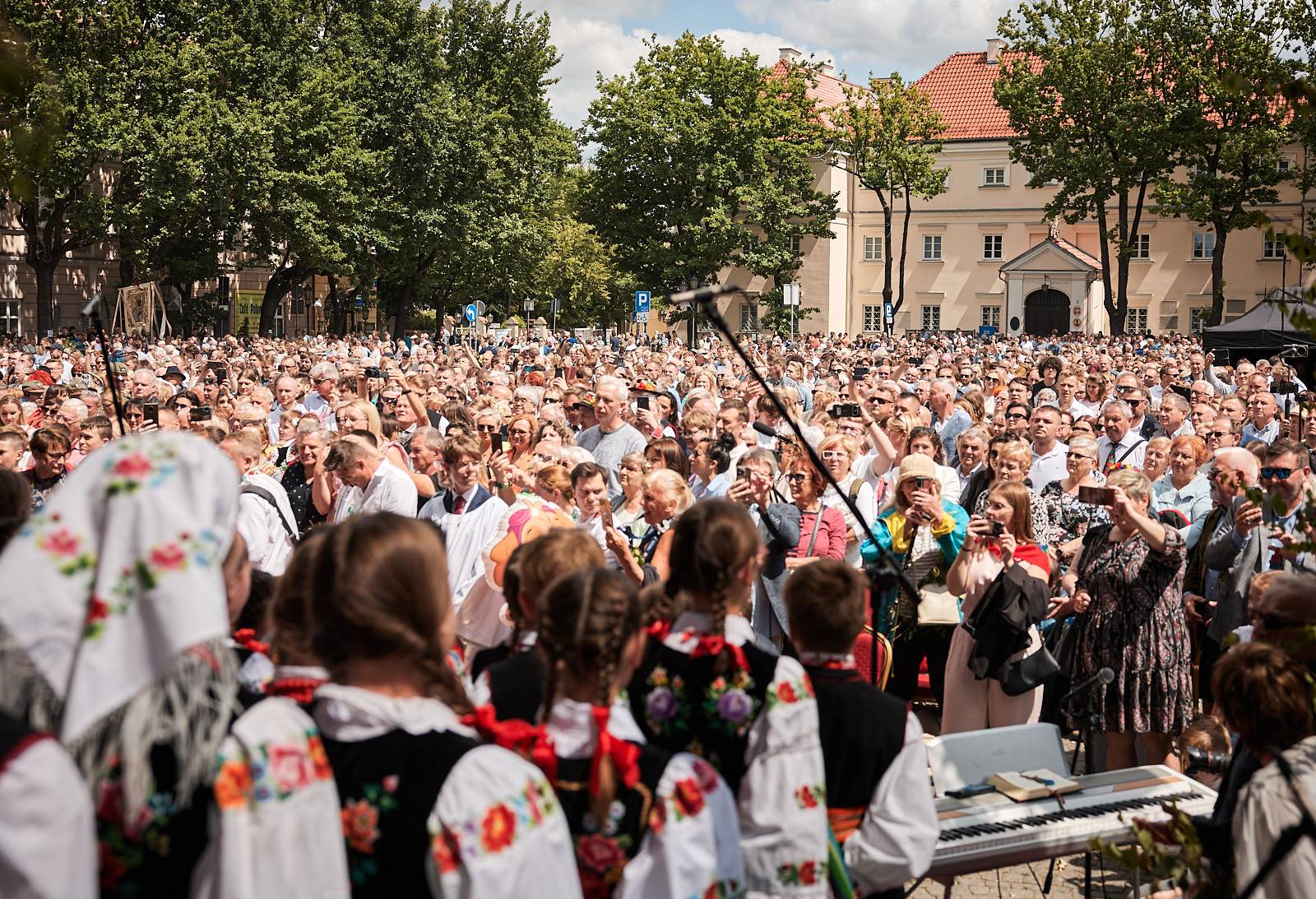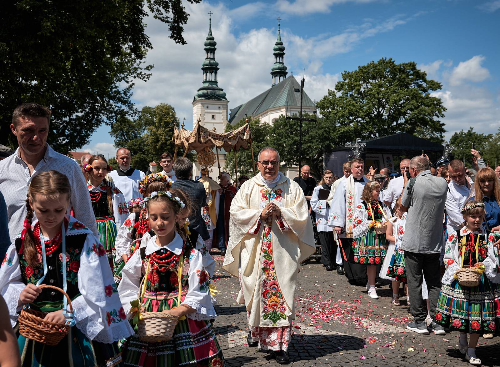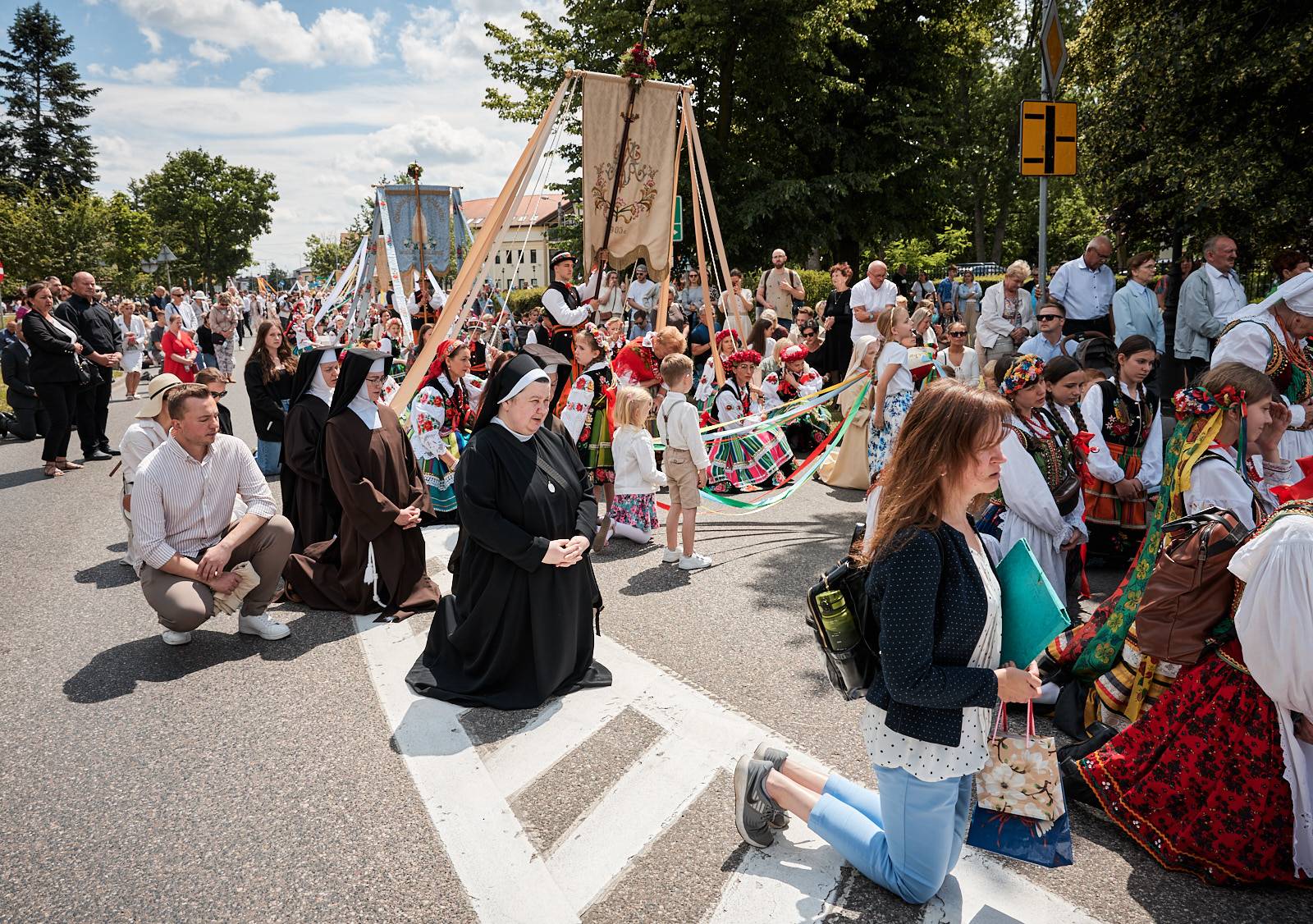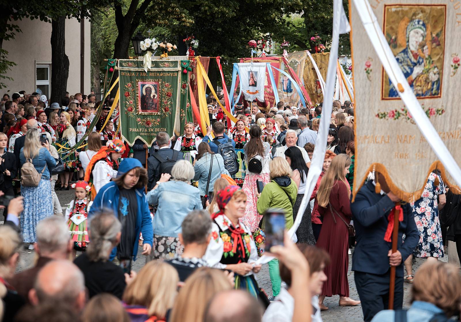 Łowicka procesja Bożego Ciała to nie tylko manifestacja wiary, ale też żywe świadectwo bogatej kultury ludowej i tradycji, które przez wieki były pielęgnowane przez lokalną społeczność. Wierni, ubrani w charakterystyczne dla regionu stroje z pasiakami – ręcznie tkane i haftowane, podkreślające regionalną tożsamość – wraz z kapłanami podążali ulicami miasta, tworząc niezwykle barwny i podniosły korowód.