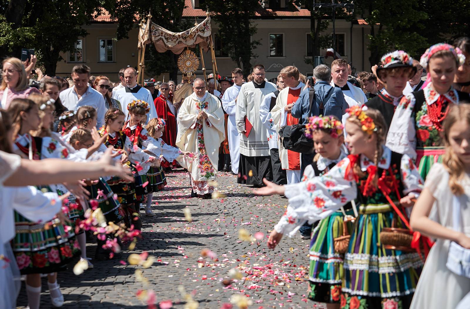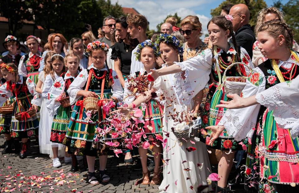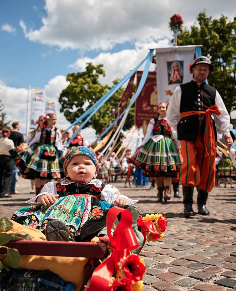 Łowicki folklor należy do najbardziej rozpoznawalnych i cenionych nie tylko w Polsce, ale także na całym świecie. Już wiele lat temu, w 1933 roku, procesję Bożego Ciała w Łowiczu uwiecznił fotoreportaż opublikowany w prestiżowym magazynie National Geographic. To właśnie tam Łowicz zyskał przydomek „kolorowej stolicy polskiej wsi" – określenie, które podczas obchodów Bożego Ciała nabiera szczególnego znaczenia i doskonale oddaje wyjątkowy charakter tego miejsca.