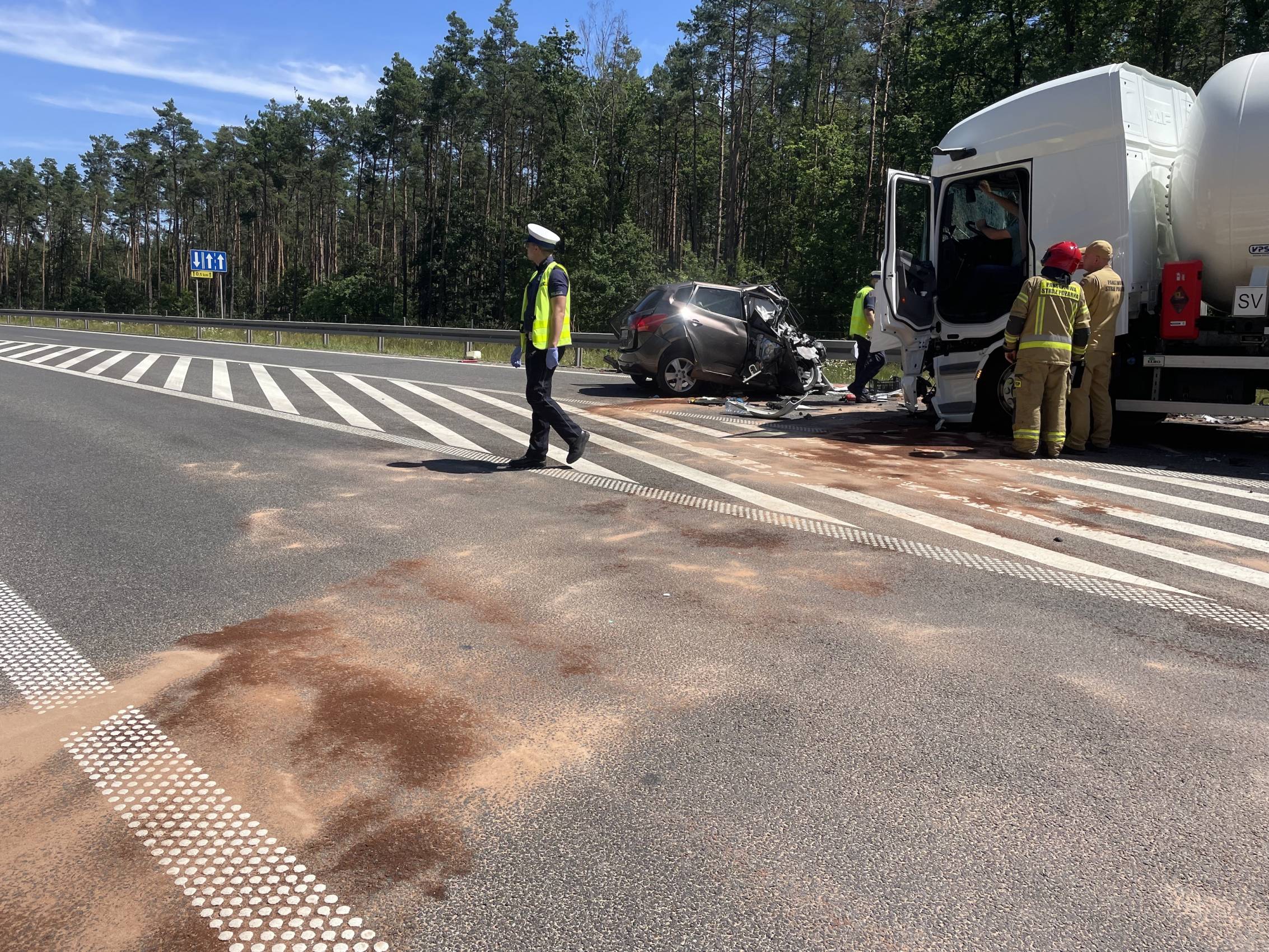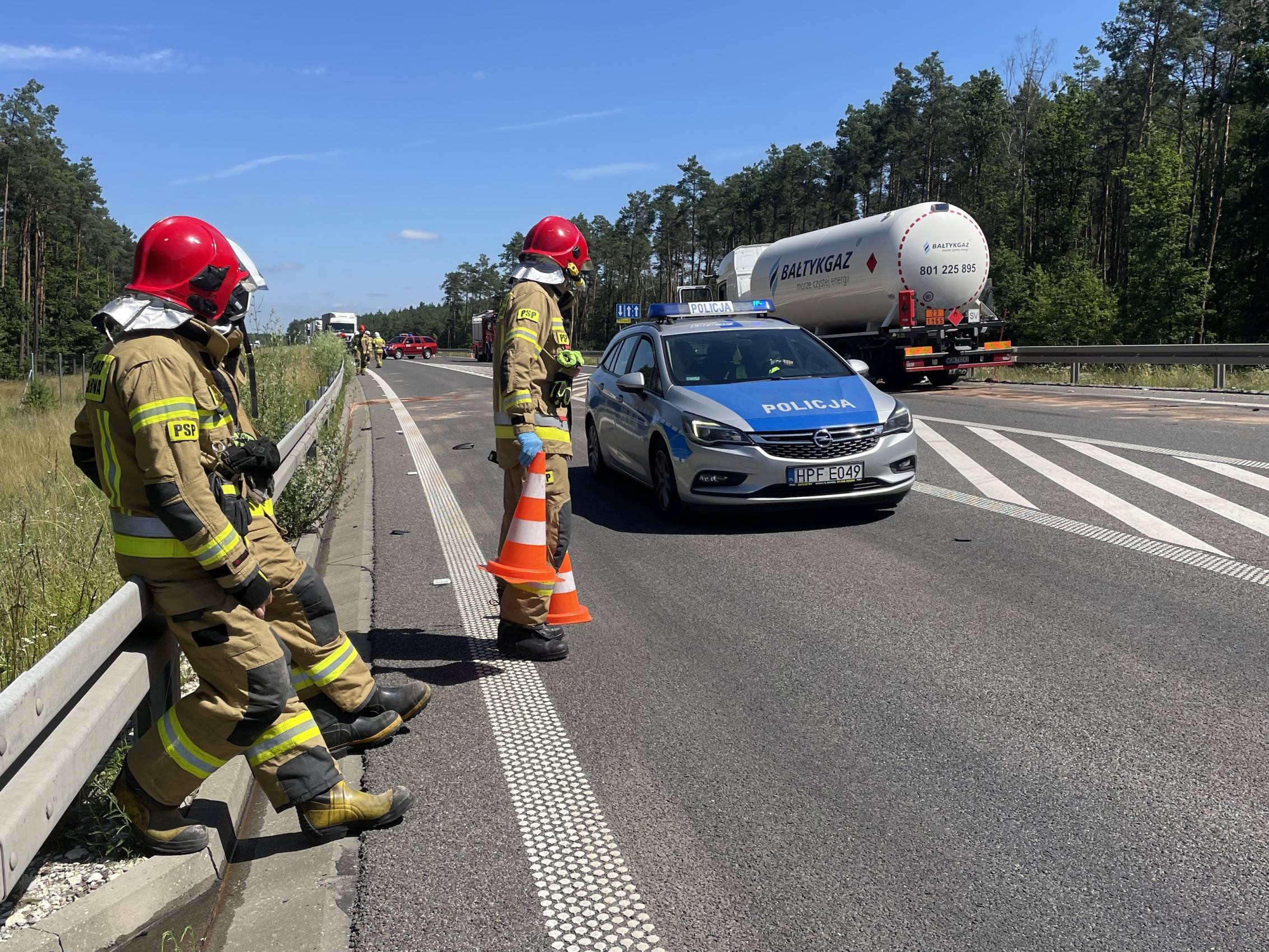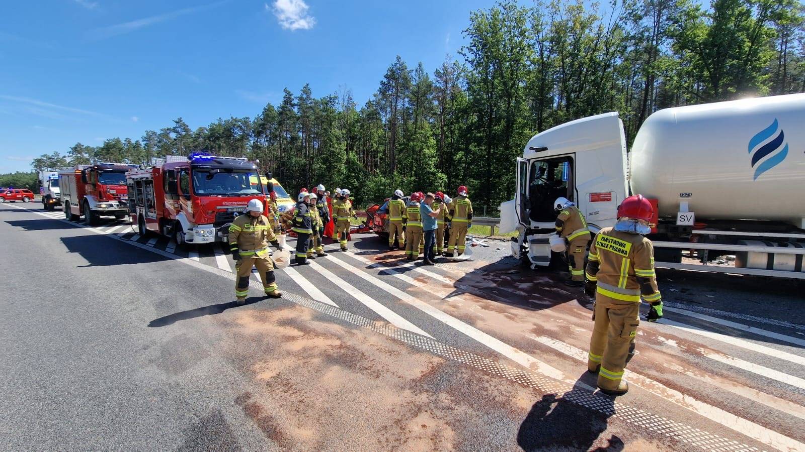 Droga jest nieprzejezdna i tak może być przez najbliższe godziny. Niezbędnym do udrożnienia trasy jest bowiem przepompowanie ładunku gazu do innego pojazdu i usunięcie pojazdów z jezdni. W tej chwili służby czekają na podstawienie kolejnej cysterny.