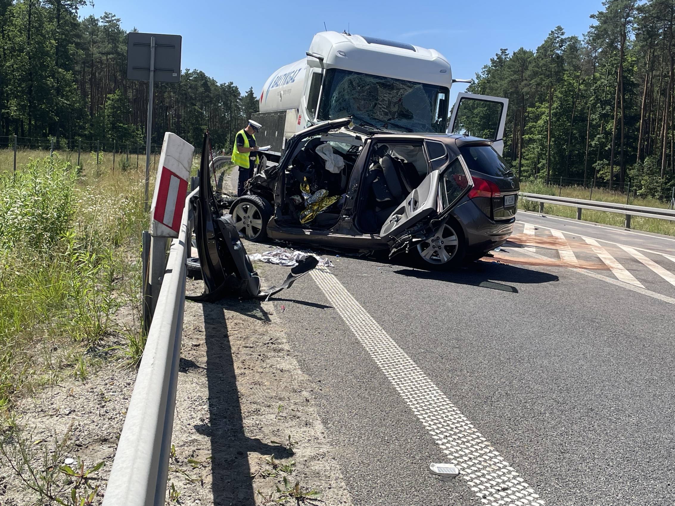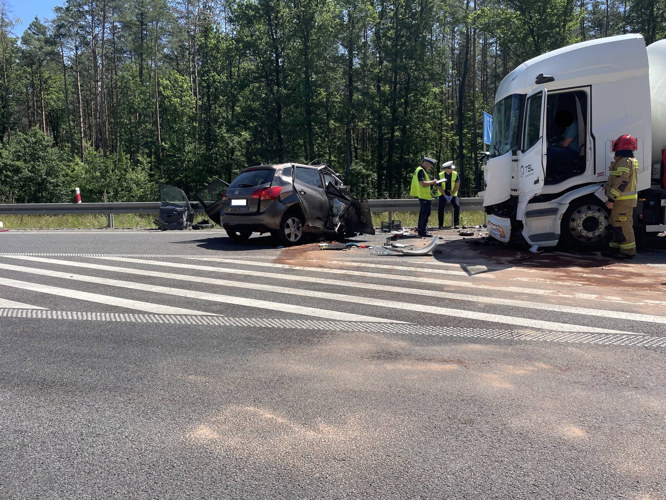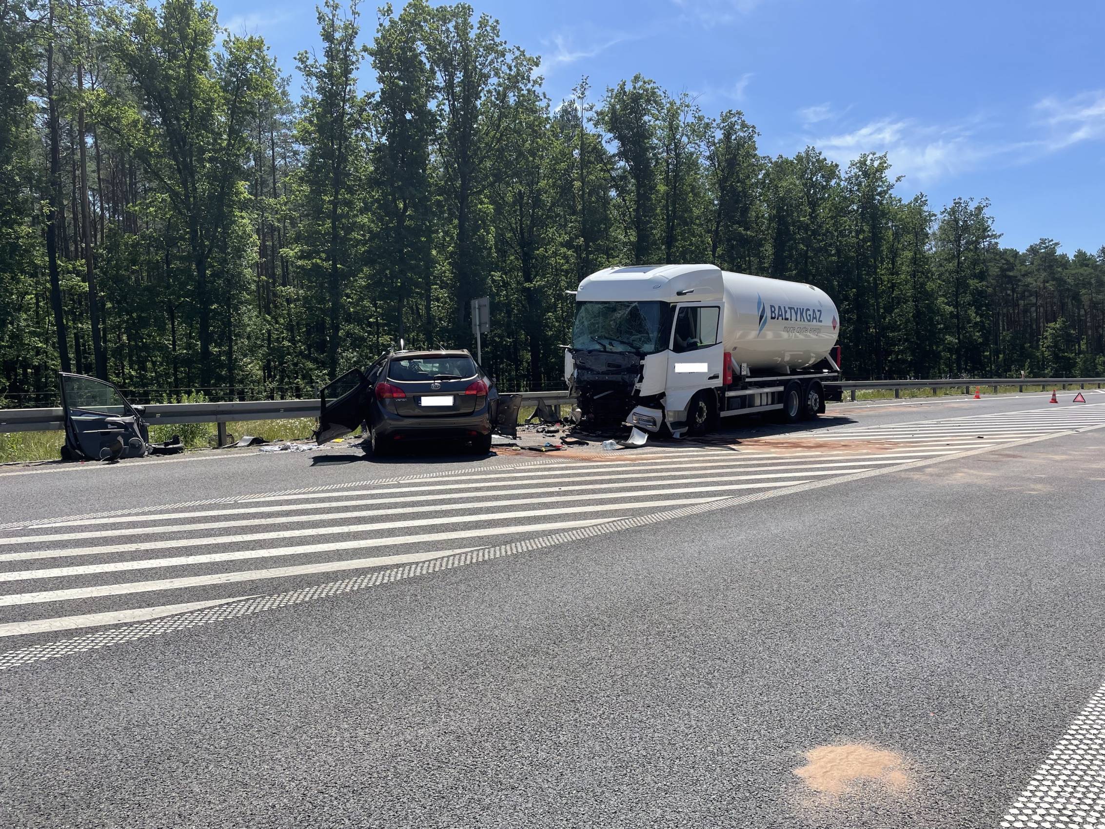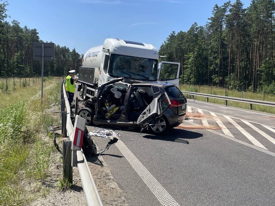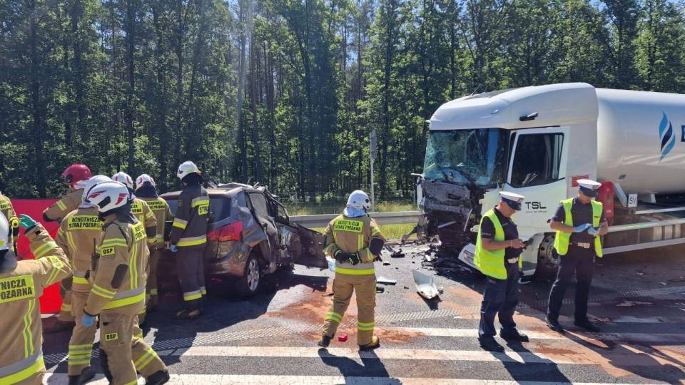 Do zdarzenia doszło w poniedziałek, 30 czerwca tuż przed godziną 10.00 rano. Wstępnie wszystko wskazuje na to, że kierujący samochodem osobowym Kia, zjechał na przeciwległy pas ruchu, wówczas doszło do czołowego zderzenia z ciągnikiem siodłowym przewożącym ładunek gazu.