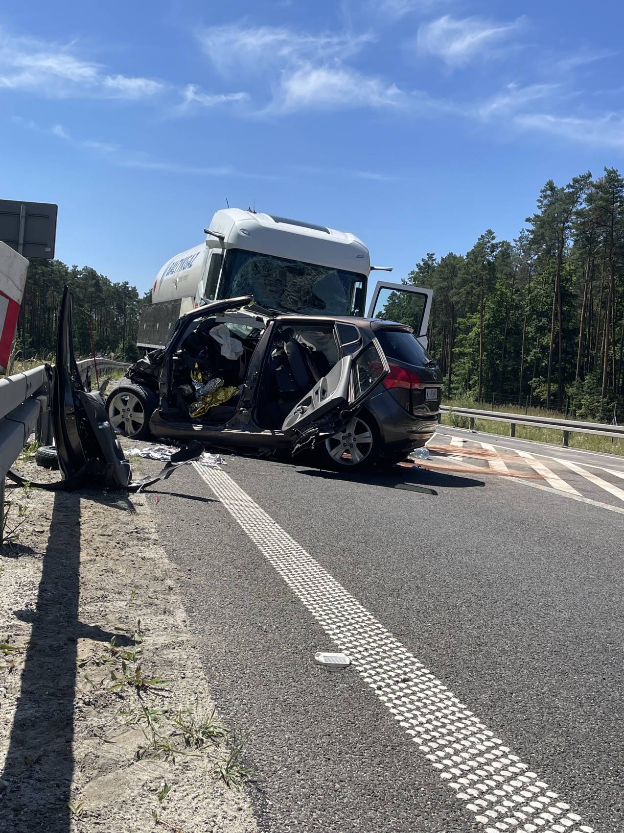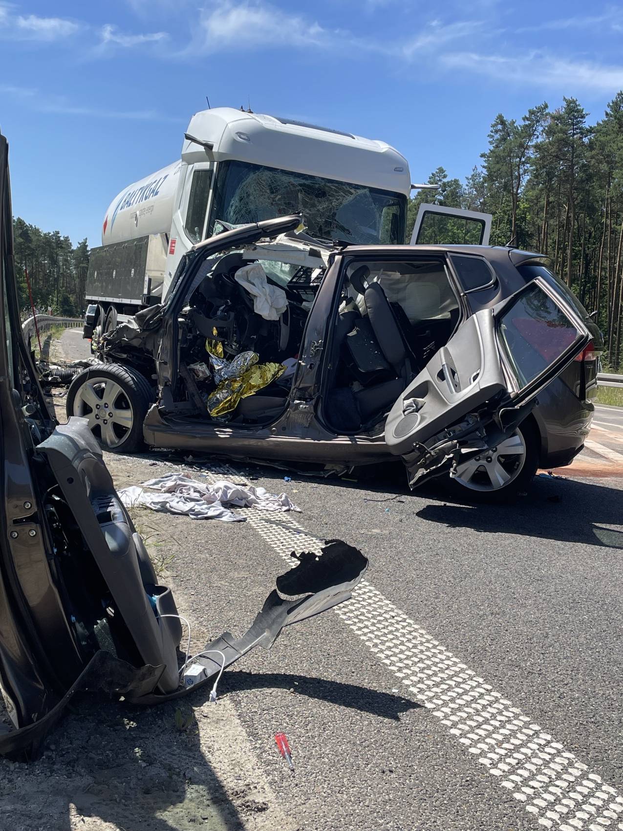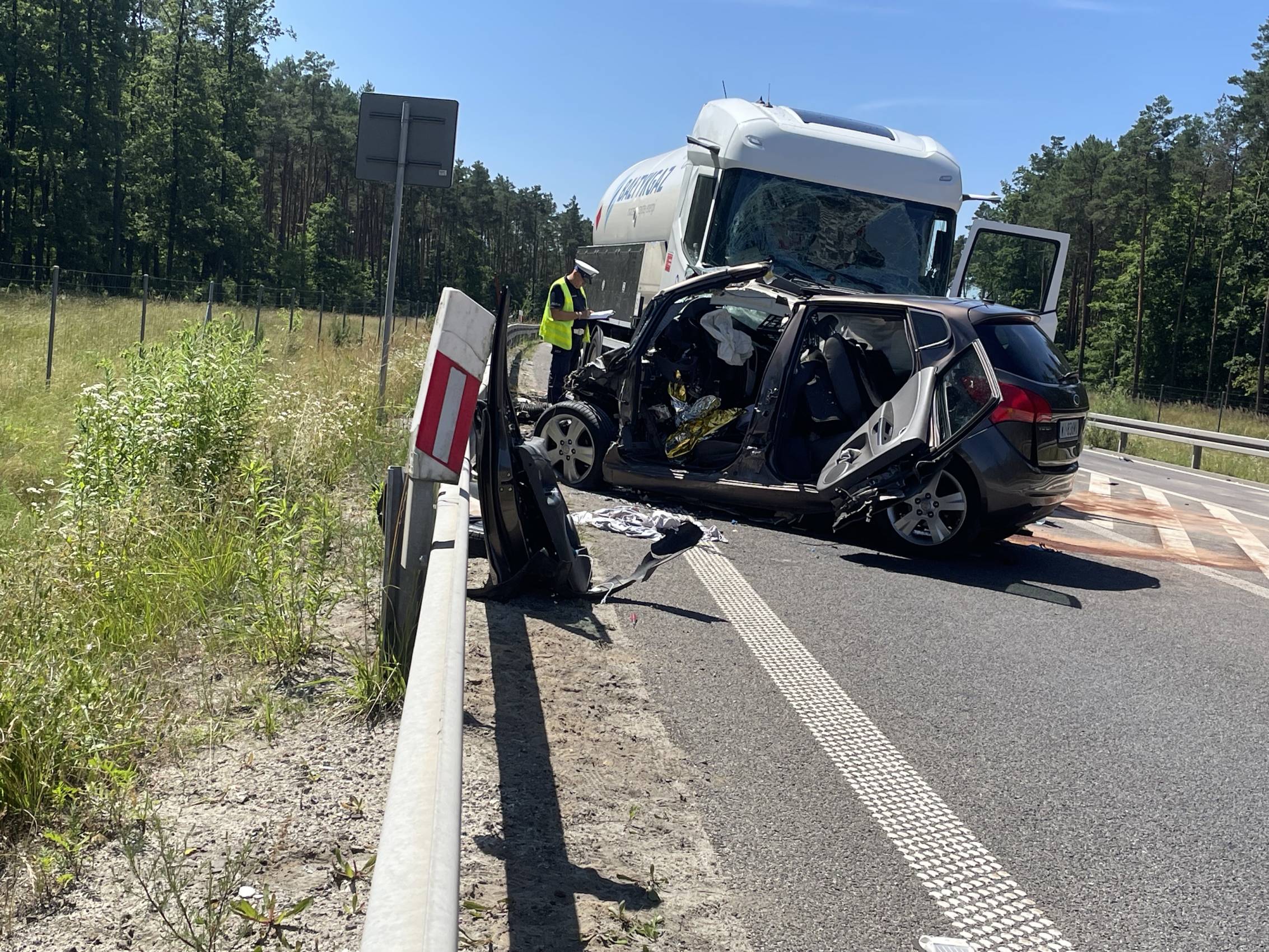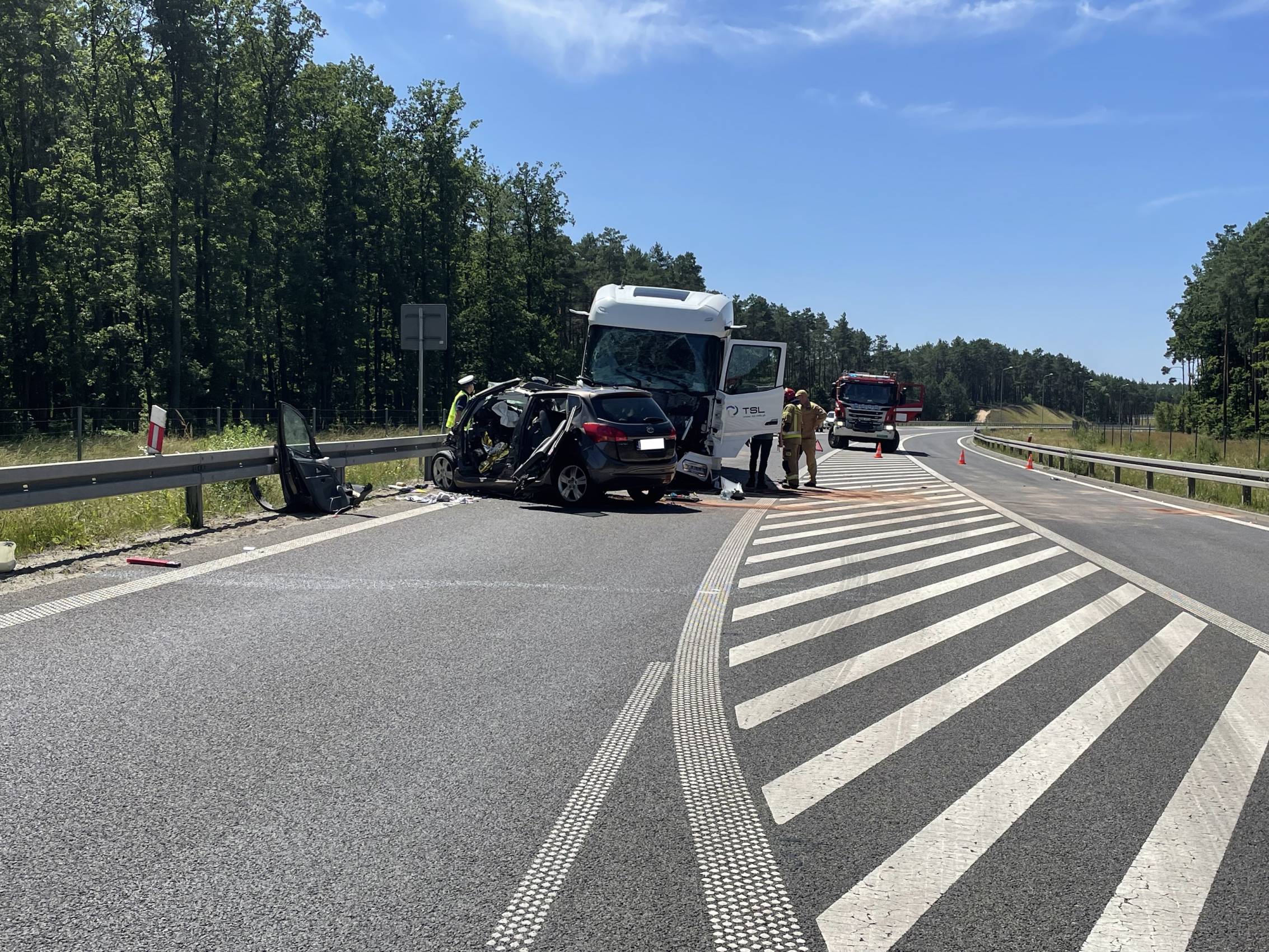 Do zdarzenia doszło w poniedziałek, 30 czerwca tuż przed godziną 10.00 rano. Wstępnie wszystko wskazuje na to, że kierujący samochodem osobowym Kia, zjechał na przeciwległy pas ruchu, wówczas doszło do czołowego zderzenia z ciągnikiem siodłowym przewożącym ładunek gazu.