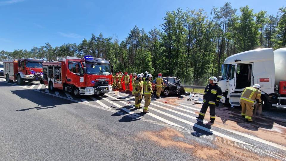 - Na szczęście cysterna nie uległa żadnemu uszkodzeniu, zagrożenia z tej strony nie ma - dodaje mł. bryg. Bartosz Stefanek z PSP Bełchatów.