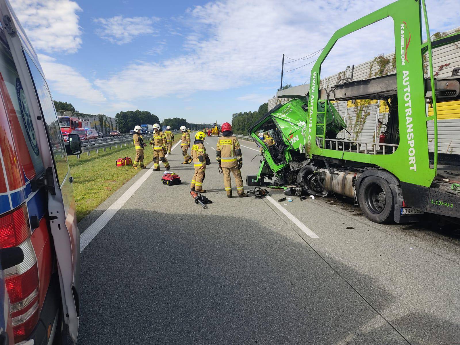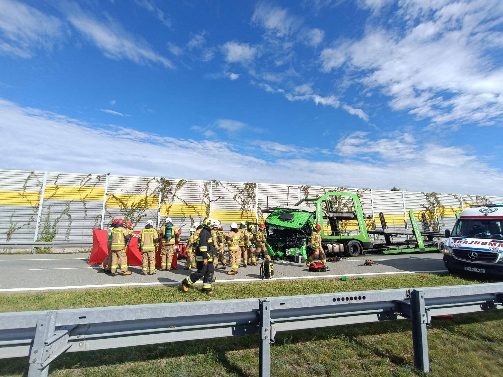 Pas w kierunku Wrocławia został całkowicie zablokowany. Utrudnienia mogą potrwać wiele godzin – na miejscu pracują policjanci, technicy oraz prokurator, którzy wyjaśniają dokładne okoliczności wypadku.