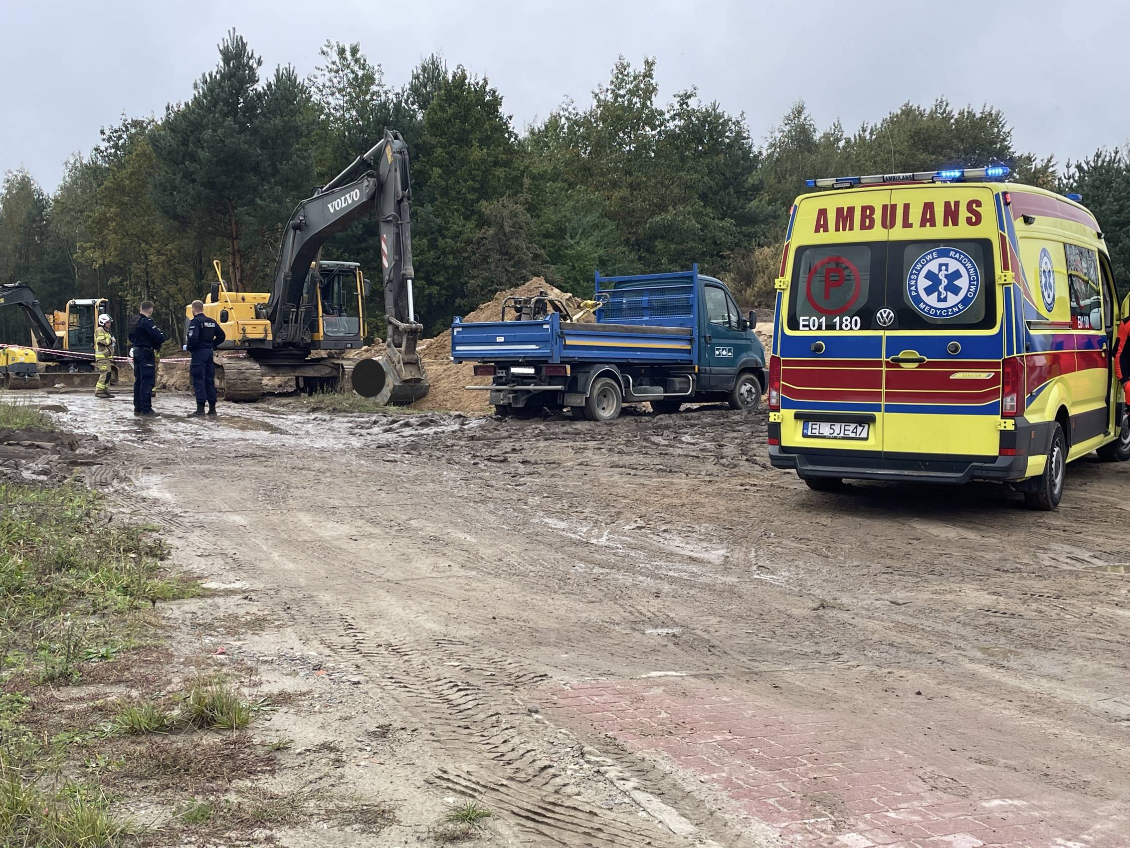Jako pierwsi na miejscu zdarzenia pojawili się bełchatowscy policjanci, którzy razem z pracownikami przystąpili do odkopywania mężczyzny. Na miejsce natychmiast skierowano też trzy zastępy PSP oraz dwa zastępy OSP.