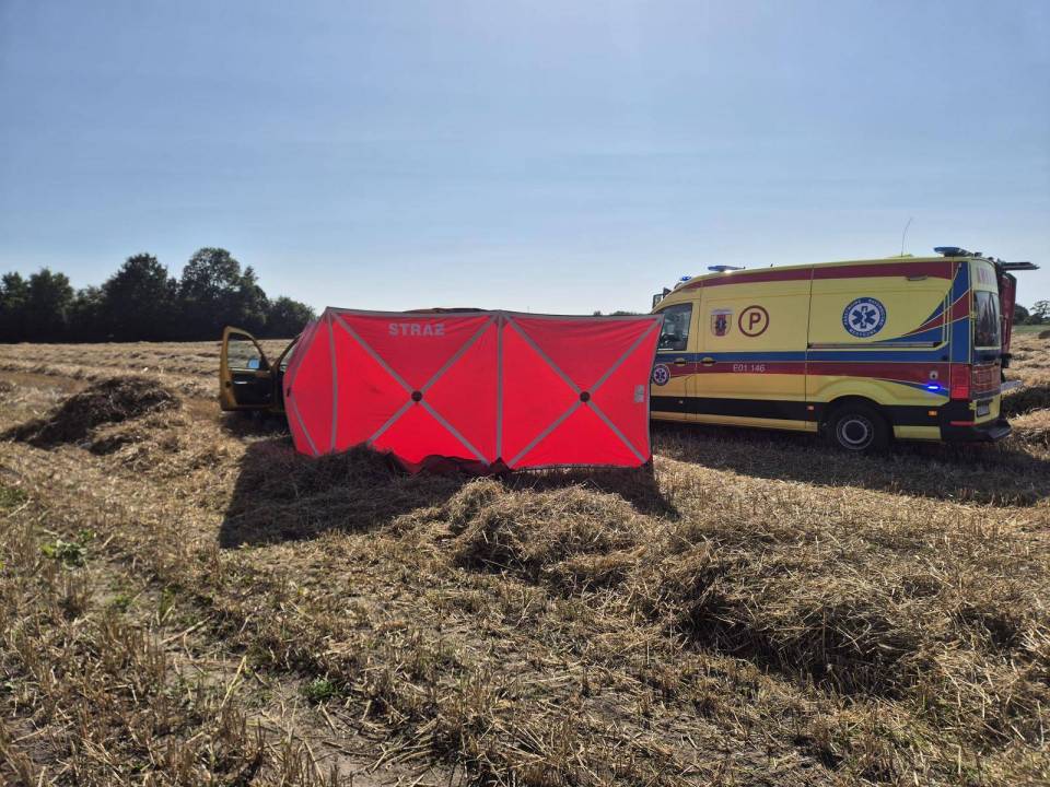 Do tragicznego wypadku doszło dziś około godziny 14:34 w miejscowości Mroczki Małe. 26-letni mężczyzna został wciągnięty przez prasę rolniczą podczas prac przy produkcji bel słomy. Pomimo natychmiastowej pomocy i przeprowadzonej reanimacji, życia poszkodowanego nie udało się uratować.