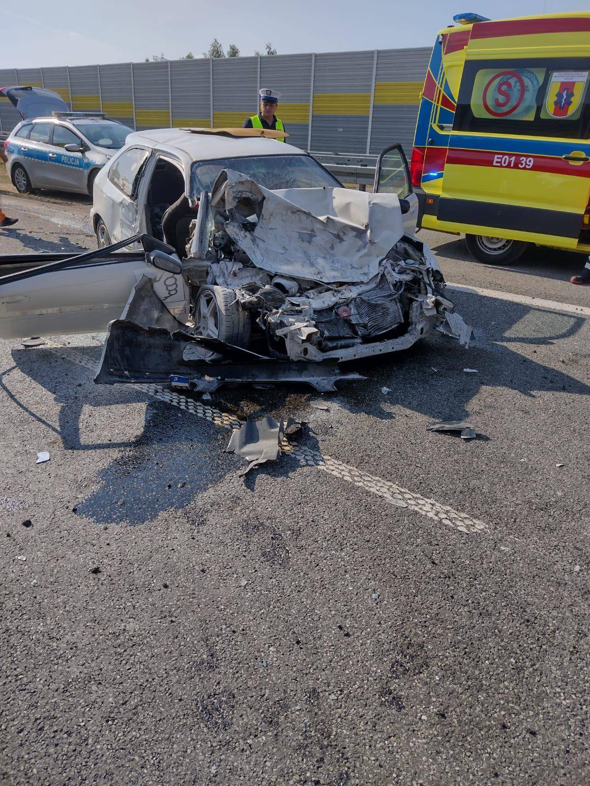 Do poważnego wypadku doszło na 171. kilometrze drogi ekspresowej S8 w kierunku Warszawy. Zderzyły się tam samochód osobowy marki honda oraz koparko-ładowarka wykonująca prace drogowe.