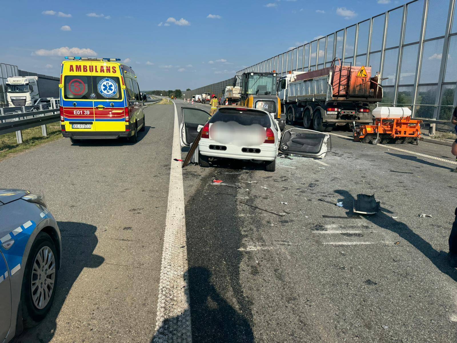Wypadek na S8: Zderzenie hondy z koparko-ładowarką. Cztery osoby w szpitalu. "Ekspresówka" zablokowana [Foto]