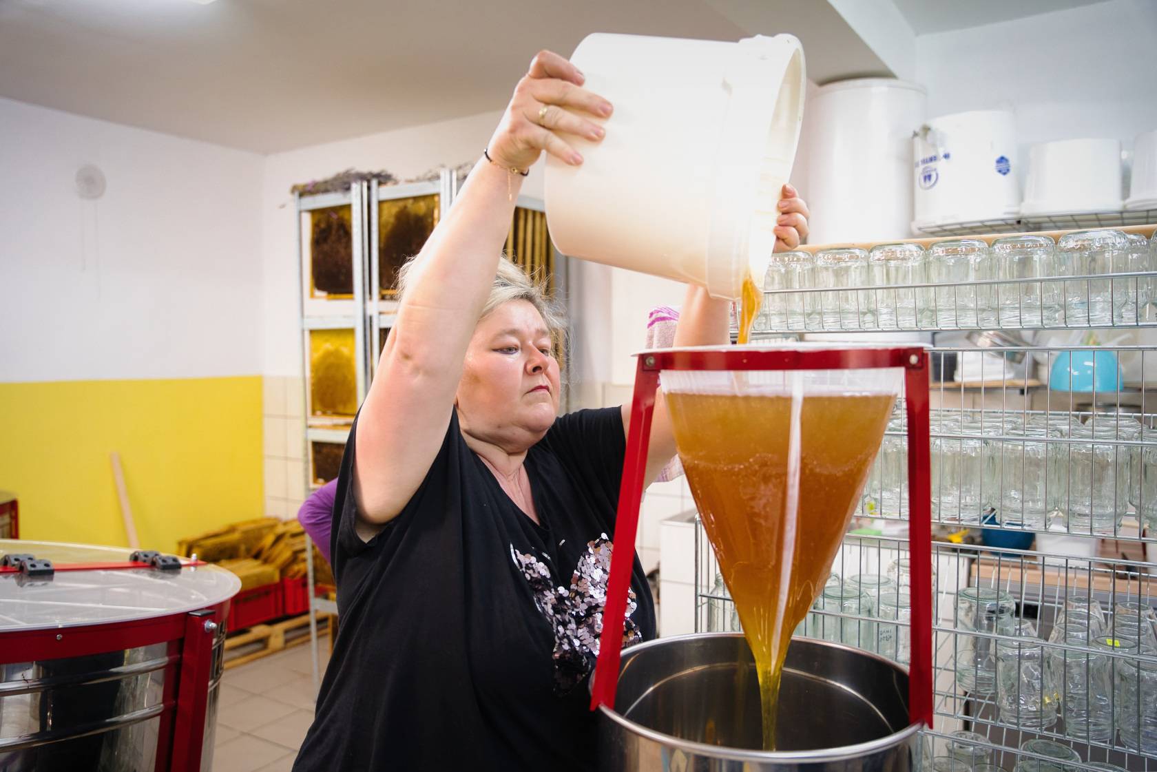 Pasieka na Wzniesieniach Łódzkich to firma w 100 procentach rodzinna. Nad rodzinami pszczelimi czuwa rodzina państwa Jatczyków: Renata i Piotr, ich syn Dawid oraz mama pani Renaty, pani Jadwiga. Każdy ma swoje obowiązki i … swój ulubiony miód. – Mój ulubiony to nawłociowy, ale wszystko zależy od tego, kto co lubi, jeden lubi jasne, inny ciemne – mówi pani Renata, która w pszczelej pasji wspiera męża od początku, choć sama ma uczulenie na jad tych owadów.