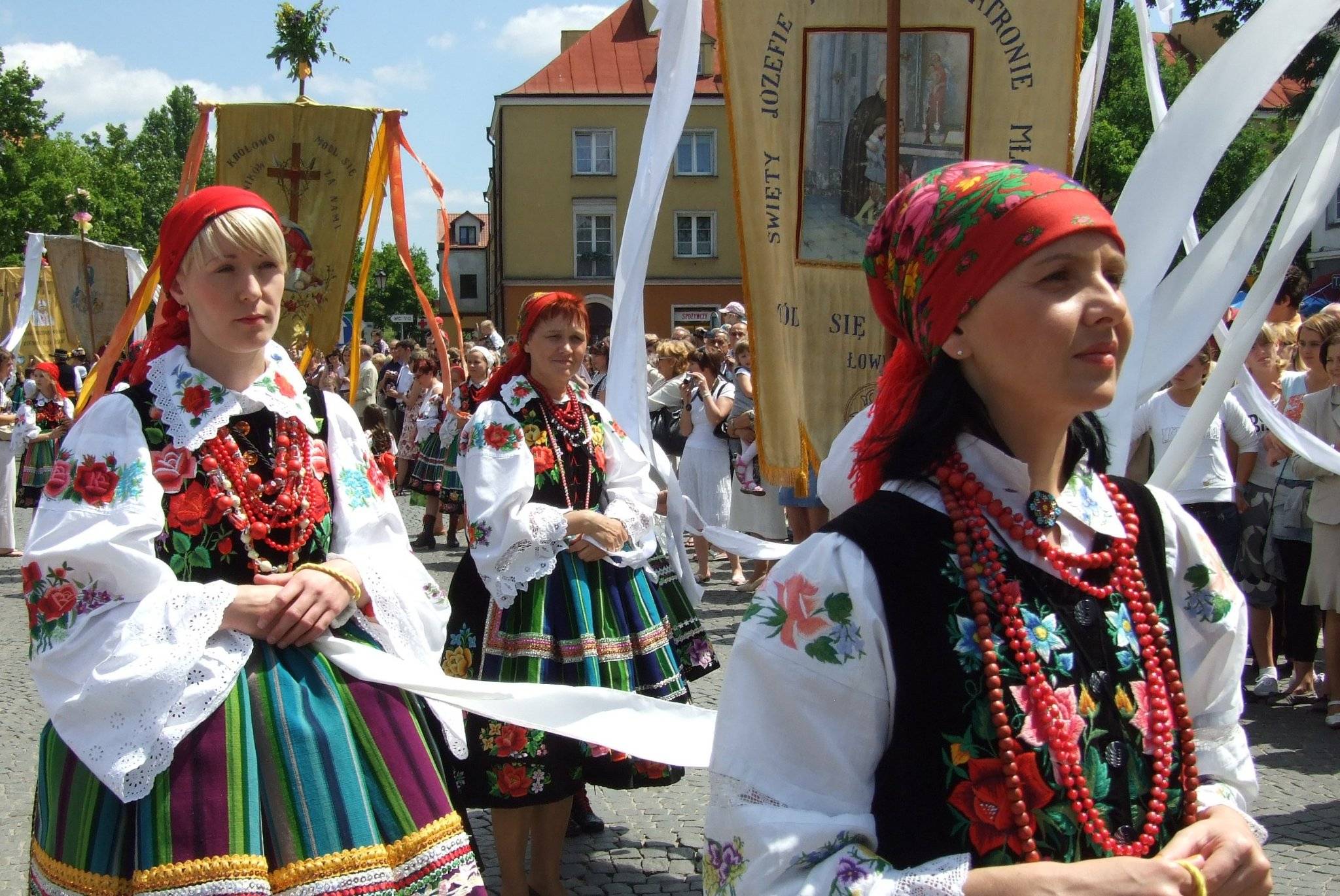 To właśnie łowicka procesja Bożego Ciała zyskała międzynarodową sławę – nie tylko dzięki swojej religijnej wymowie, lecz przede wszystkim za sprawą niezwykłej oprawy. Mieszkańcy Łowicza, zarówno dzieci, młodzież, jak i dorośli, zakładają tego dnia tradycyjne stroje ludowe – słynne „pasiaki" – będące dumą regionu. Stroje te, pełne soczystych kolorów i misternych haftów, to jeden z najbardziej rozpoznawalnych symboli polskiego folkloru, znany i ceniony nie tylko w kraju, ale i za granicą – pojawiały się na wystawach, w muzeach i pokazach etnograficznych od Nowego Jorku po Tokio.